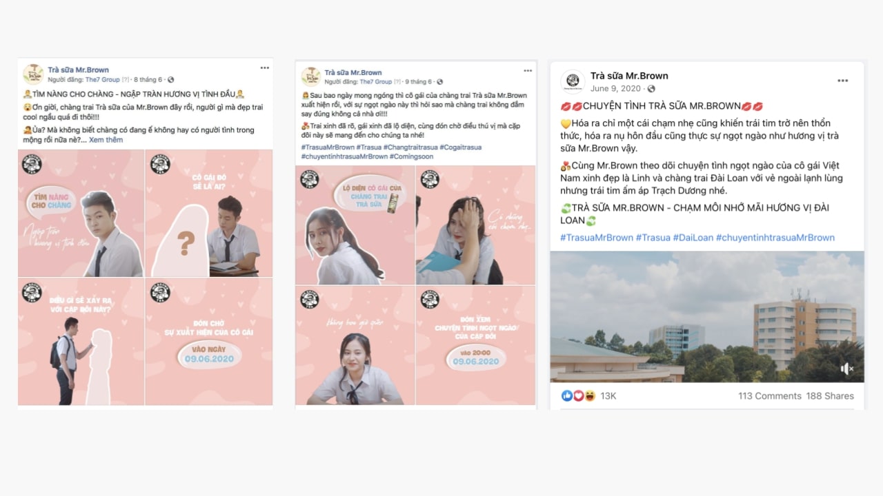 The7 kết hợp cùng với nhãn hàng tạo ra 01 video viral clip với thông điệp “Chạm môi nhớ mãi hương vị Đài Loan” nhằm nhấn mạnh vào nguồn gốc xuất xứ Đài Loan của sản phẩm trà sữa Mr. Brown đồng thời lồng ghép câu chuyện tình trà sữa gà bông ngọt ngào thời học sinh.