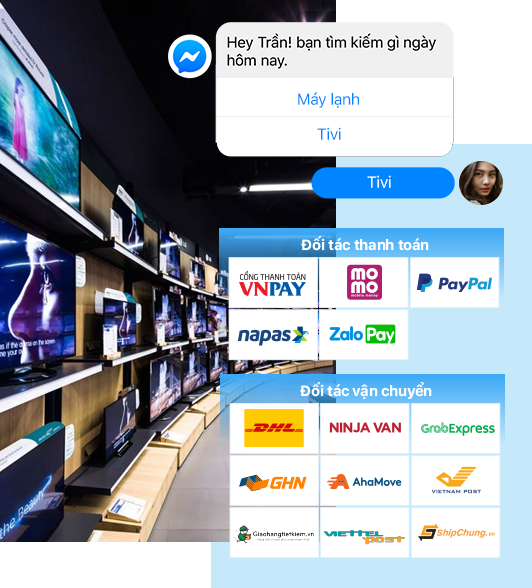 Kết nối với khách qua Messenger, giải đáp thắc mắc, thu thập thông tin (hình thể, sở thích, số điện thoại,…) và tư vấn bán hàng tự động bất kể ngày đêm.